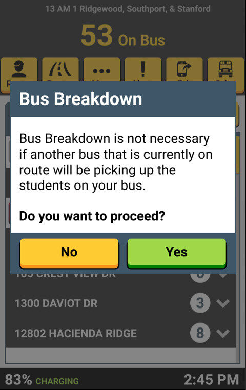 It is not necessary to use the Bus Breakdown button if another bus that is currently on route will be picking up the students on your bus.