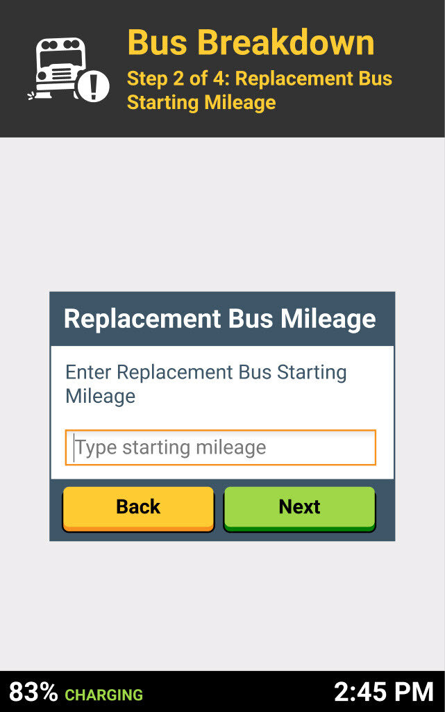 Enter the replacement bus starting mileage