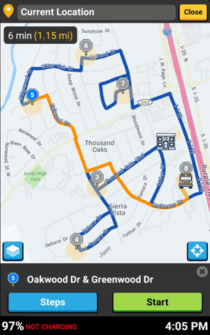 While on route, your driver tablet gives you an updated list of your bus stops for each route. You can also view specific turn-by-turn instructions required to get to each stop.